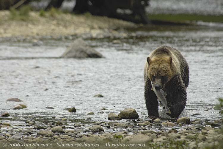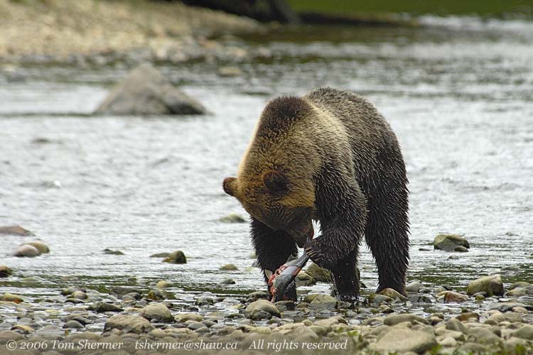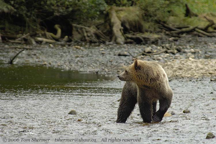 The object of the bear's attention is a Spring Salmon: it's the start of their yearly run up the Glendale Creek. We'd seen one or two swimming along and jumping earlier in the day.