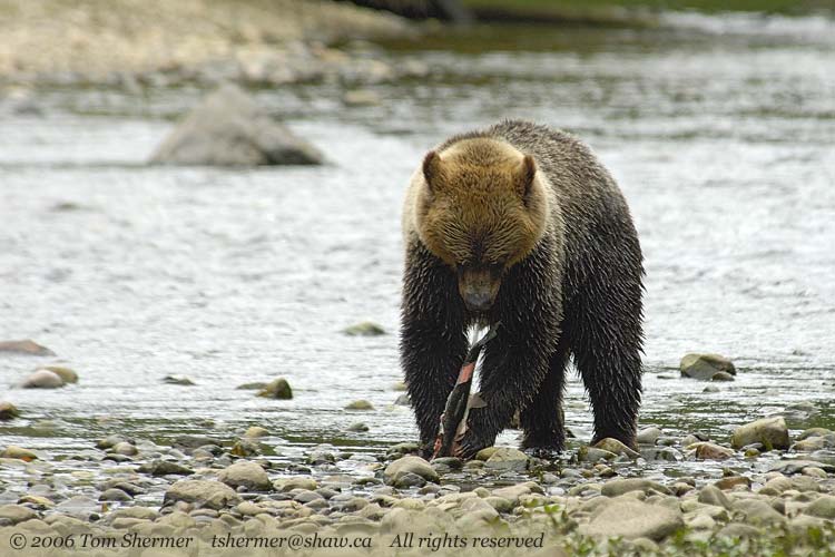 I mean, just how often do you get to see a Grizzly Bear with a salmon wrapped around its nose?
