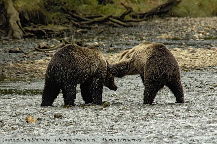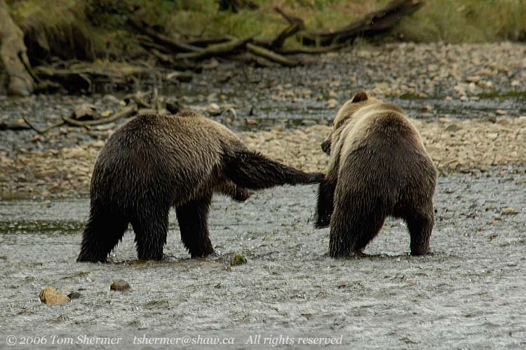 As the bears walked away, they stopped and engaged in a little play. It was pretty cute, but I'm not sure if I'd want something that big with those teeth and claws horsing around with me. |