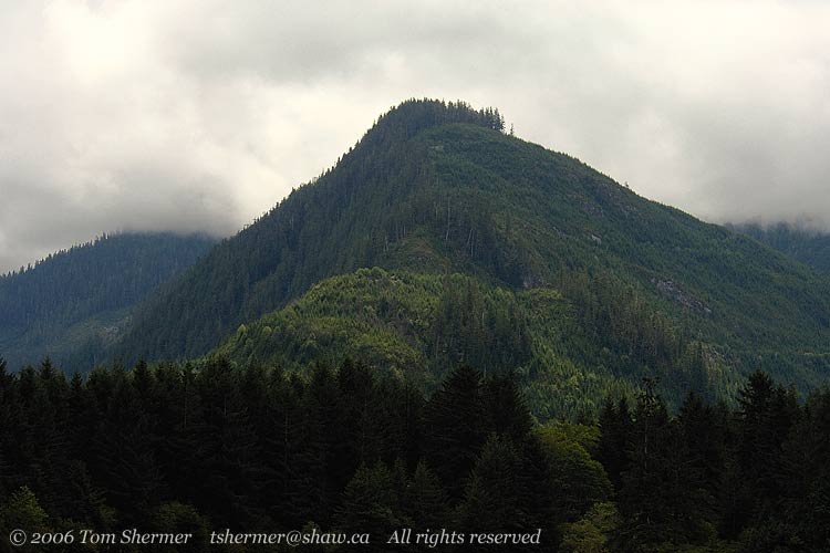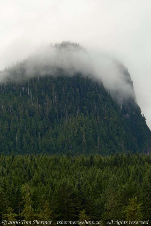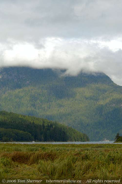 While we were in relatively still waters, I took a few landscapes, showing some of the area around the cove. The clouds were fairly low and obscured the tops of most of the mountains.