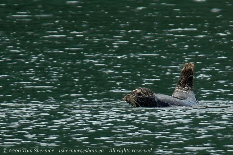 Thus ended one extraordinarily fabulous day. I had seen grizzlies in the wild for the first time ever, caught them playing and fishing and eating, seen a black bear in a tree, gotten good shots of deer and mergansers, been face-to-face with an eagle, got my lifer Common Murre, and found a great old rusty truck. And then there was the seal and the porpoises...
