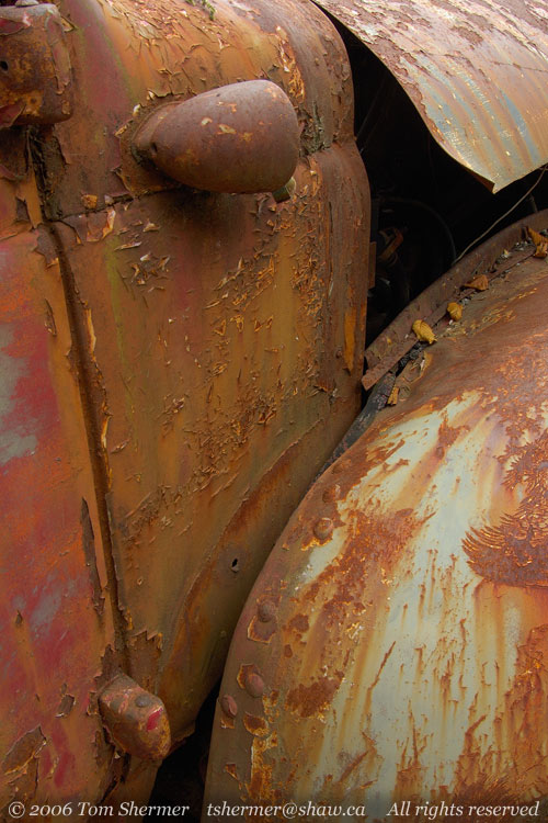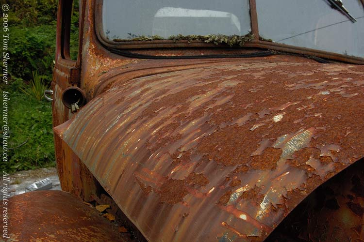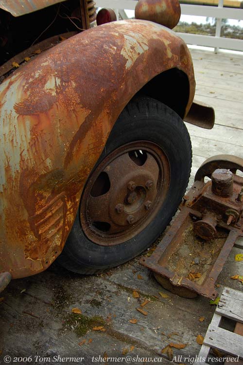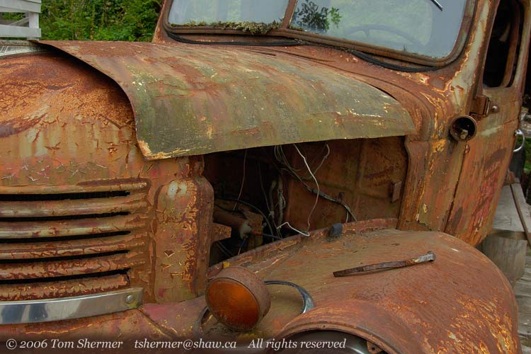 There is a boardwalk that connects the buildings that line the cove, and on the side of (nay, on) this boardwalk there was an old Dodge truck that was rusting away. Despite being worn out from a long and exciting day, I couldn't resist changing lenses and taking photos. |