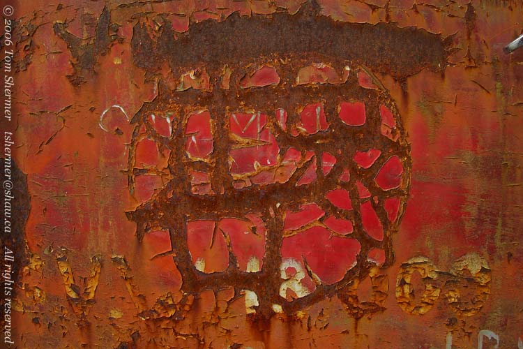 It appeared that there had been several overlapping decals or paint designs applied to the driver's-side door at various times. They made for interesting detail. |