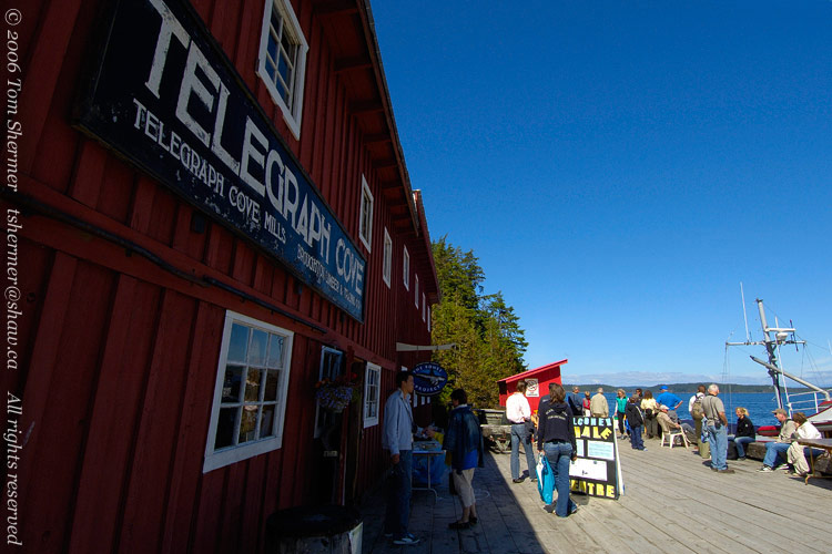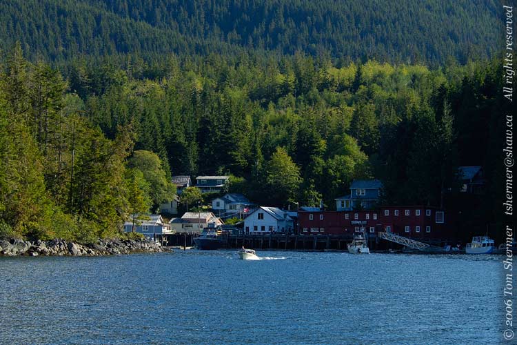 The day after the grizzly-watching trip, I again had plans to take a nature tour out of Telegraph Cove. This time, thankfully, I didn't have to be there until the afternoon, so I slept in and had a late breakfast. When I got outside at Port McNeill, I found a gorgeous sunny day. Here's what it looked like once I drove the short hop over to Telegraph Cove. |