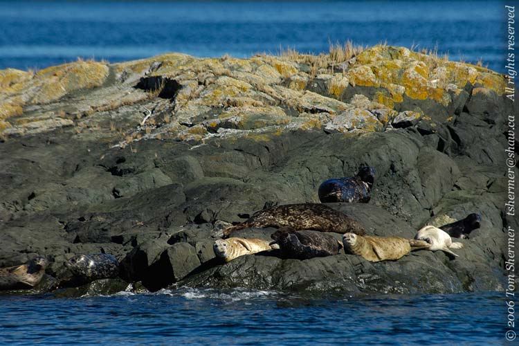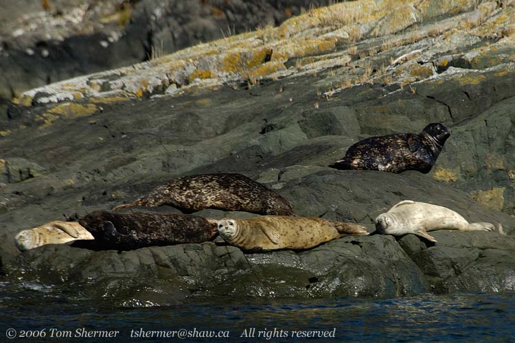 Around the other side of the island from the Humpbacks, we sputtered to a stop near a rock with some basking Harbour Seals. |