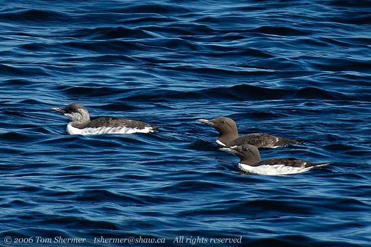 Seeing the Rhinos, I started to think about birds. Looking around the boat, I found a nearby trio of Common Murres. I'd seen my first Common Murres only the day before, but these were much closer, yielding better photos. |