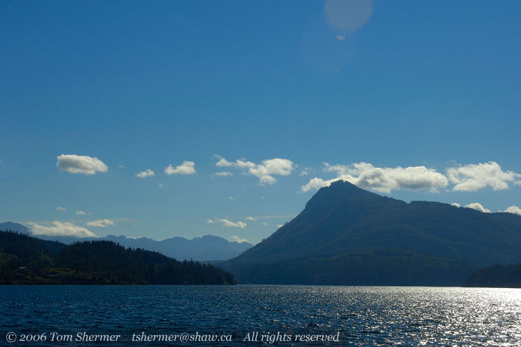 And here's a shot in towards the cove. Interestingly enough, about a minute before I took this photo, we had another Orca swim past us along the shore, headed southeast (left in the photo). |