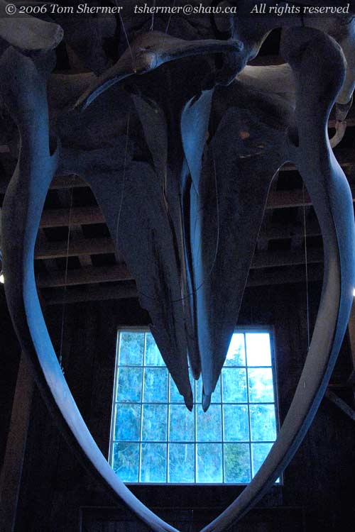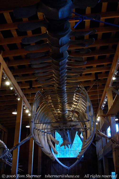 Back at the cove, I took a little time to visit a museum they have there. In the museum, they have several aquatic mammal skeletons, including a big whale hanging from the rafters. It looked like it would make for good photos, so I took a few. |