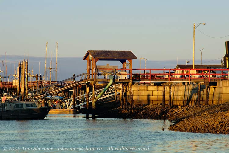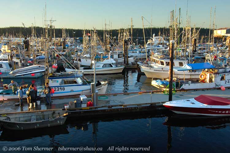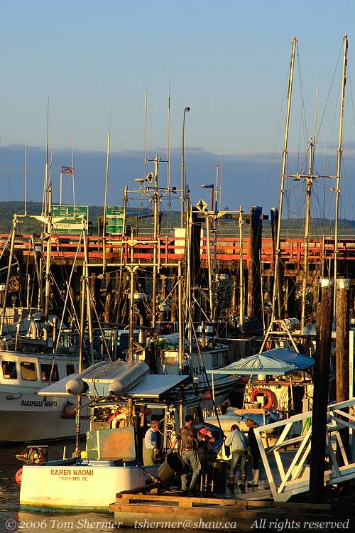 At this point, it was 5:30, and I drove back to Port McNeill for dinner. After dinner, I went down to the waterfront, where I found a group of people loading something off of a boat at the marina. |