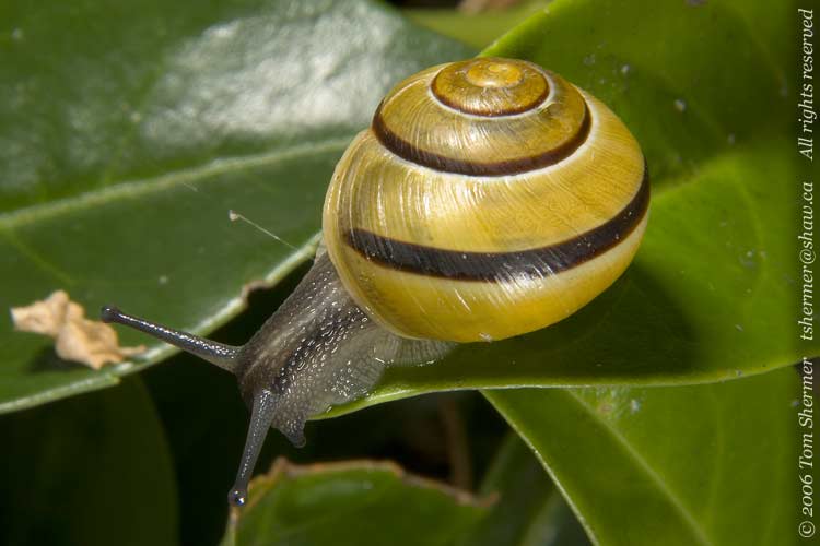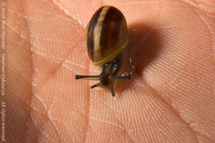 I think all of these snails are Grovesnails (Cepaea nemoralis), but I'm not completely certain about the little ones. I decided to pick a little one up to see if the underside had any detail that would help in their identification. |