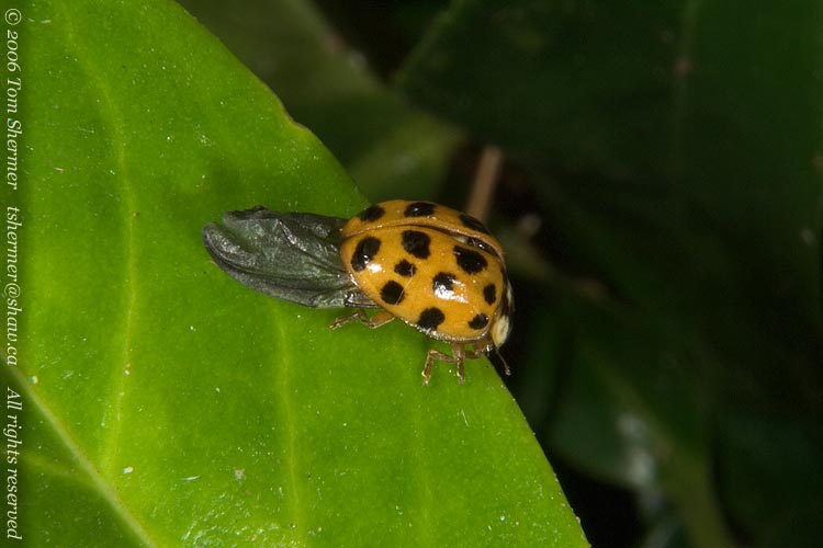 This next lady was an oddity, though. She was clearly H. axyridis, but her wing covers were misshapen and didn't seem to close. |
