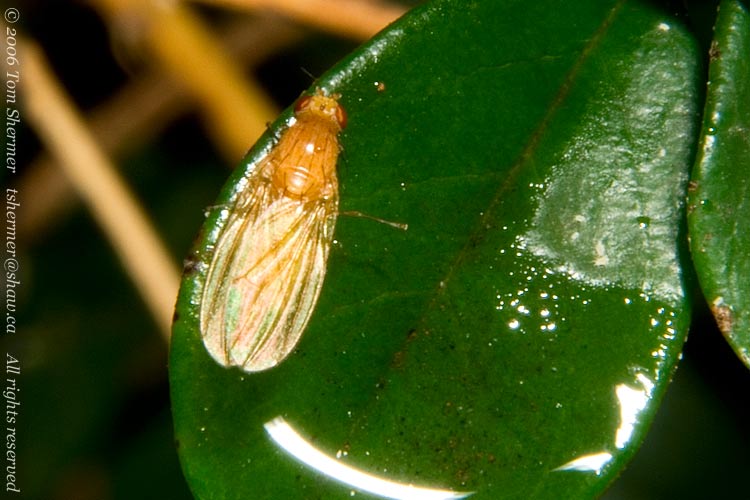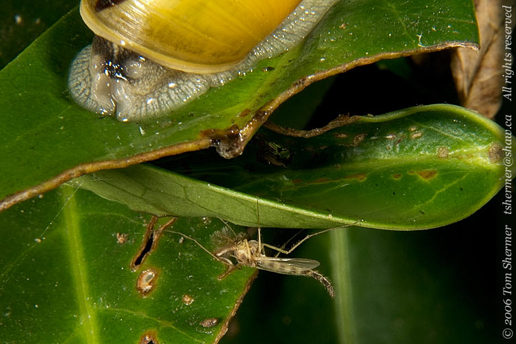 I'll leave you with one last photo from the bush. This one shows a midge hiding on the underside of a leaf, waiting to jump on some unsuspecting prey. I don't think a snail is what he had in mind, though.