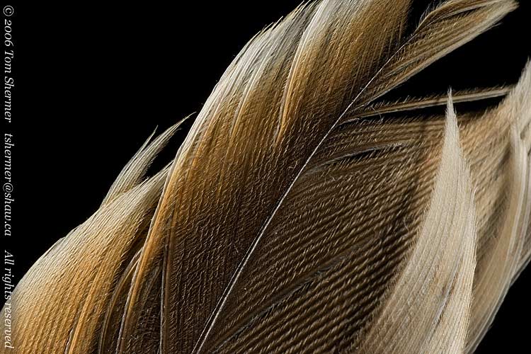 The first thing I found that I thought would make a good photo was a duck feather that I've had around for a while. I had picked it up on one of my outings. Up close, feathers are quite interesting. |