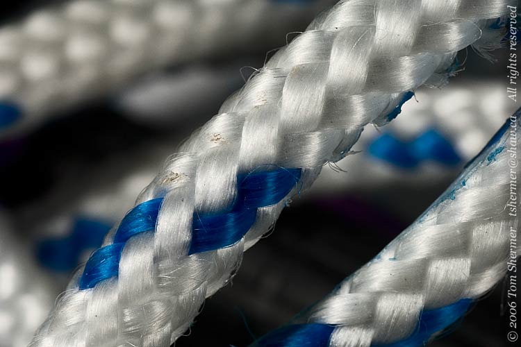 I next found a length of nylon rope that I keep with a ball tied into one end to use as a cat toy. |