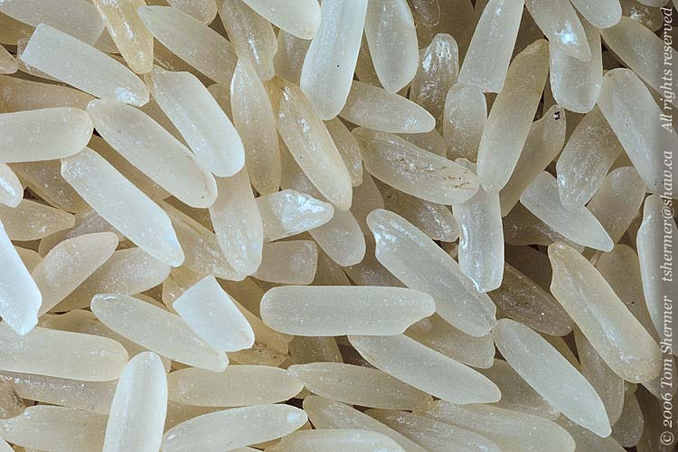 I had set my tripod and lights up in the kitchen for all of these shots. On the counter there, I saw the jar that I keep rice in, and thought that rice might be a good subject. I set up to shoot straight down into the jar, and got a decent reward for my efforts. |