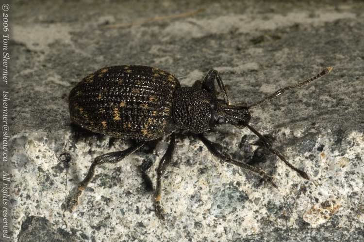 I walked around the building, finding the usual spiders, and lots more snails and sowbugs. The only other interesting thing I found was a weevil. This weevil is the Black Vine Weevil (Otiorhynchus sulcatus), a fairly common species, but the first I've seen around these parts. He's not the prettiest of bugs, but he has his good points. |