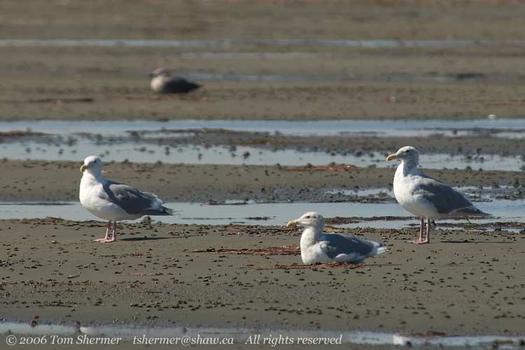 As I trudged out into the bay, I encountered my first subjects, gulls. By their pink legs and dark mantle, I'm thought that they were Herring Gulls, but those wiser than I think they're Glaucous-winged. |