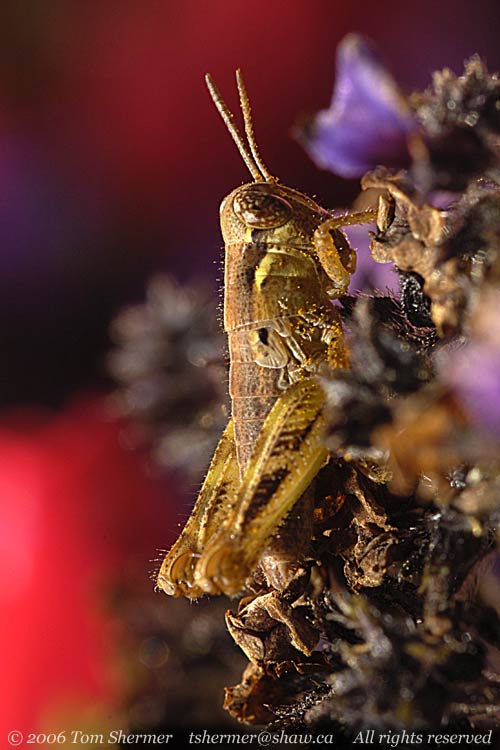 I also stopped by the garden on the river side of the building, and found a couple of other interesting little critters. Critter number one was a colorful little grasshopper. |