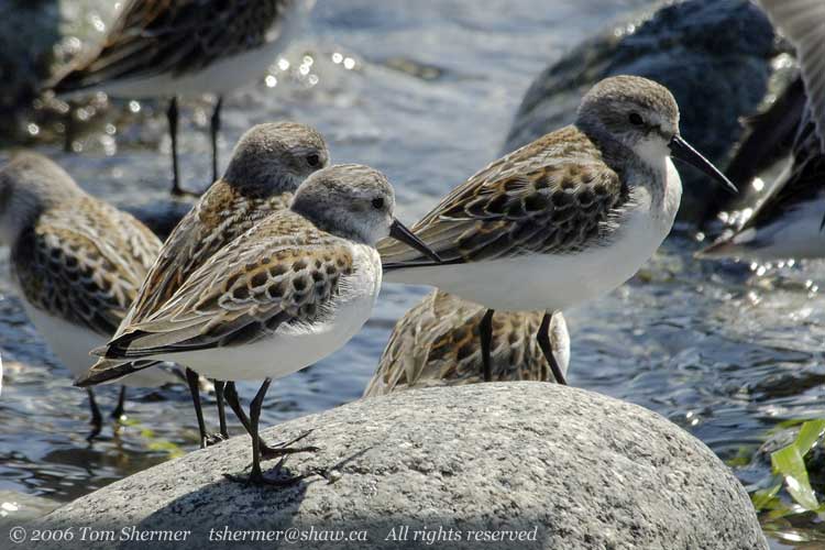 And after I left Reifel I headed to the Tsawassen ferry jetty, where I found a flock of about 60 or so Western Sandpipers on the south side of the jetty. I slowly worked my way down to where I could get detailed shots of them. |