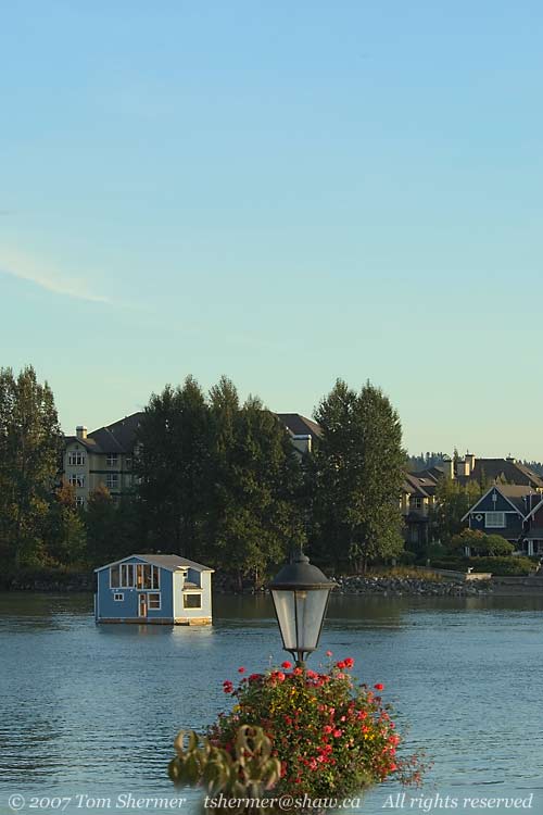 On September 19, I woke and stepped out on my balcony to find a house floating by on the Fraser. Water levels must've gotten pretty high upriver. |