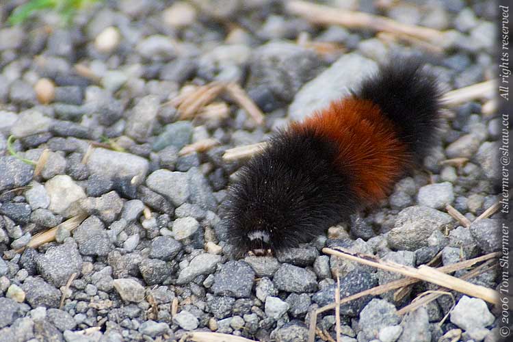I've seen these caterpillars around before; they're called Woolly Bear Caterpillars, because of their thick coat. This particular type of woolly bear is the larva of Pyrrharctia isabella, the Isabella Tiger Moth.