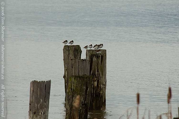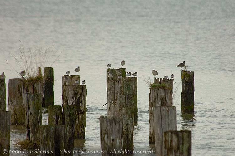 A little further along, there is a group of piles that used to support some sort of dock. Now all that the piles seem to support are shorebirds. |