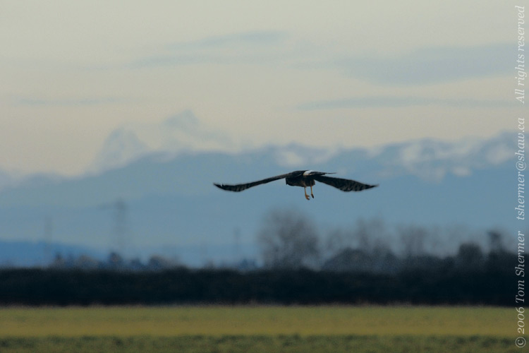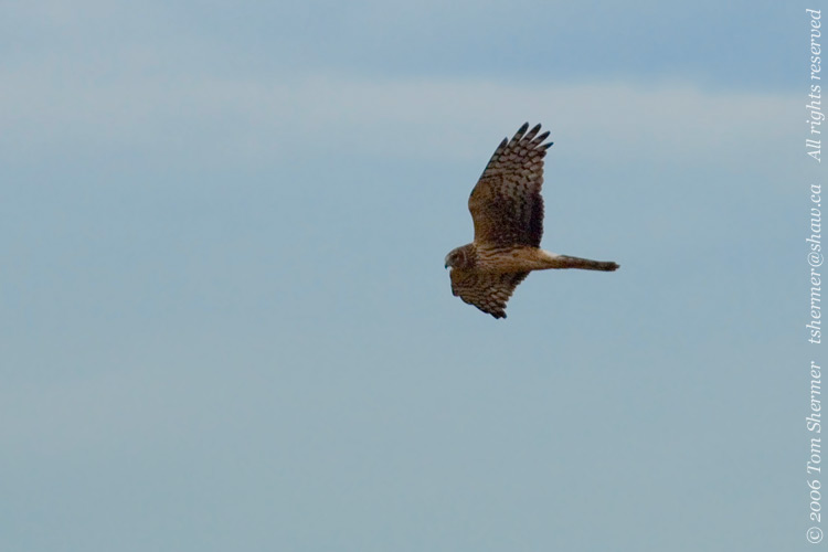 After another ten minutes or so, I was nearing some Northern Harriers who were cruising above the foreshore and the field. Here's one that was above the foreshore. |