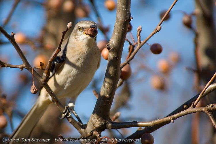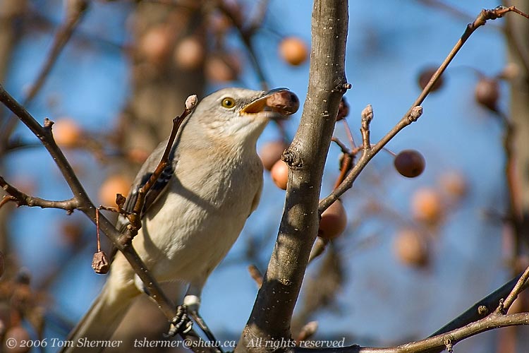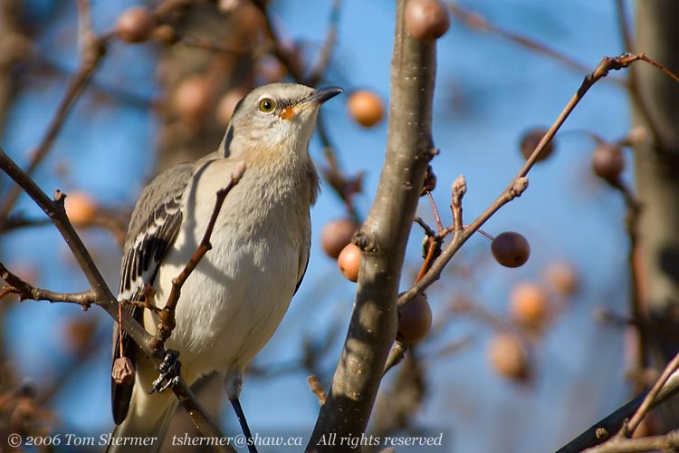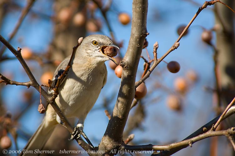 Northern Mockingbirds are also common here. For my next photos I managed to coax one into demonstrating how he eats a berry.