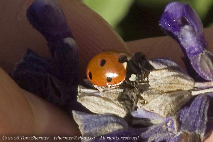 On October 22, I was hanging out in the garden at my building when I found a ladybug. This was interesting because it wasn't the usual Asian Multicolored Ladybug, but rather a 7-Spotted Ladybug (Coccinella Septempunctata). This is a native lady, where the others are invaders. It was nice to see her. |