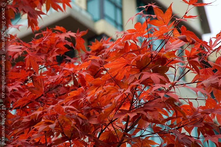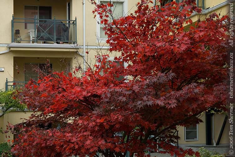 On the 27th, I decided to try to work on my tree photography; trees are a subject that I have a hard time taking good photos of. I chose the little Japanese Maples in my building's courtyard as my subjects, and tried several different approaches and compositions. |