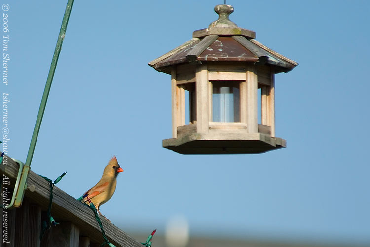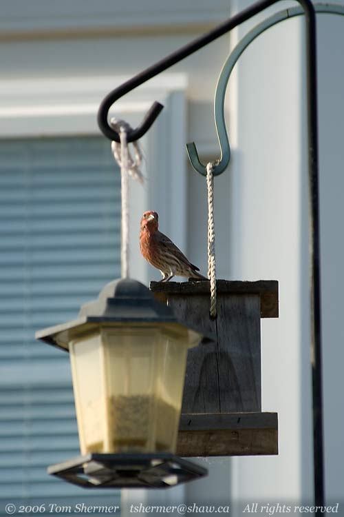 Back by the deck, a House Finch eyed the sky as a vulture flew by. |